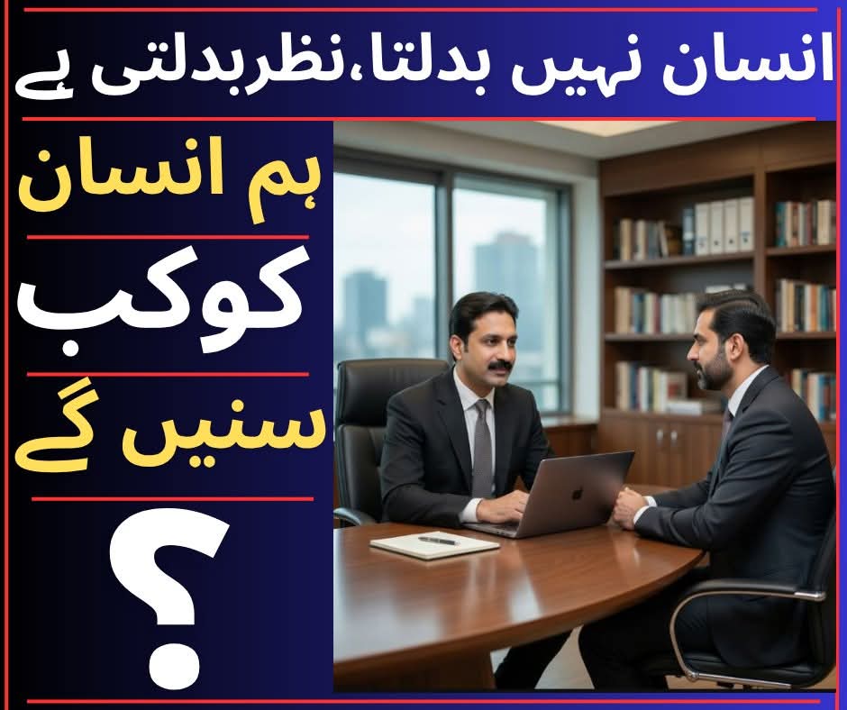 وہاں الفاظ کم تھے، انداز زیادہ ۔۔۔۔ میں نے نرمی سے پوچھا۔۔۔۔ اوریہ تبدیلی کب آئی۔۔۔۔؟۔۔۔ وہ ذرا سا رکا۔۔۔۔ جیسے وقت گن رہا ہو۔۔۔۔پھر بولا !! بس ۔۔۔۔ آہستہ آہستہ احساس ہوا۔۔۔۔ میں نے ہلکی سی مسکراہٹ کے ساتھ سر جھکا لیا۔۔۔۔کیونکہ ، مجھے اندازہ ہو چکا تھا۔۔۔۔ یہ احساس آہستہ آہستہ نہیں آیا۔۔۔۔ یہ حالات کے بدلنے کی رفتار کے ساتھ آیا ہے۔۔۔۔ میں نے کرسی کی پشت سے ٹیک لگائی اور چند لمحے اسے دیکھتا رہا، کچھ چہرے وقت کے ساتھ نہیں بدلتے، صرف ان پر چڑھی ہوئی نیتیں بدلتی رہتی ہیں۔۔۔۔ آپ جانتے ہیں۔۔۔ ؟ میں نے دھیرے سے کہا،انسان کوسمجھنا اتنا مشکل بھی نہیں ہوتا۔۔۔۔ بس ایک چیز دیکھنی پڑتی ہے۔۔۔۔آپ اسے کس وقت دیکھ رہے ہیں۔۔۔۔